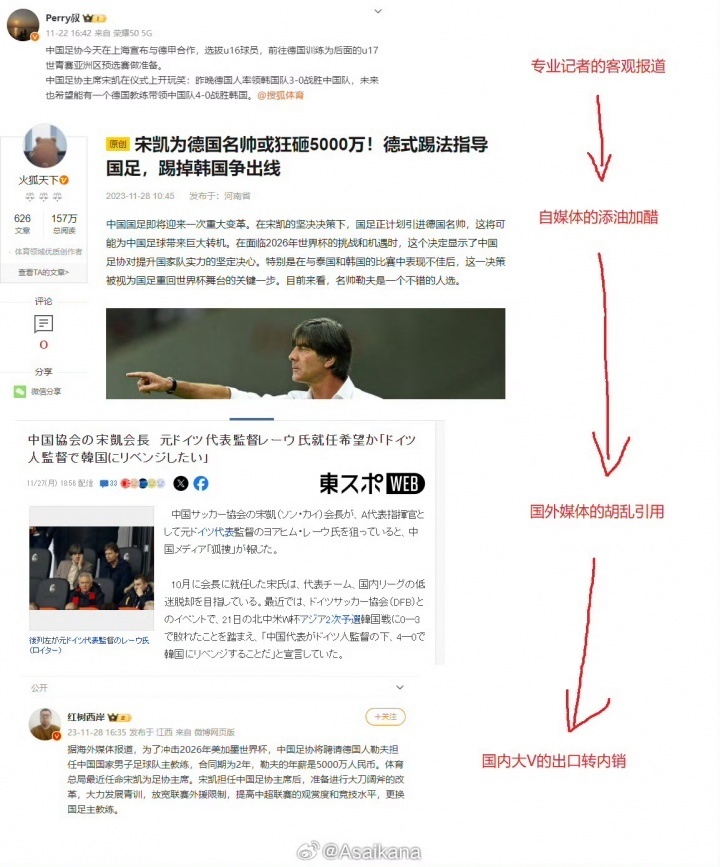 媒体人呼吁管管!韩媒报道克林斯曼执教国足 来源是中国自媒体